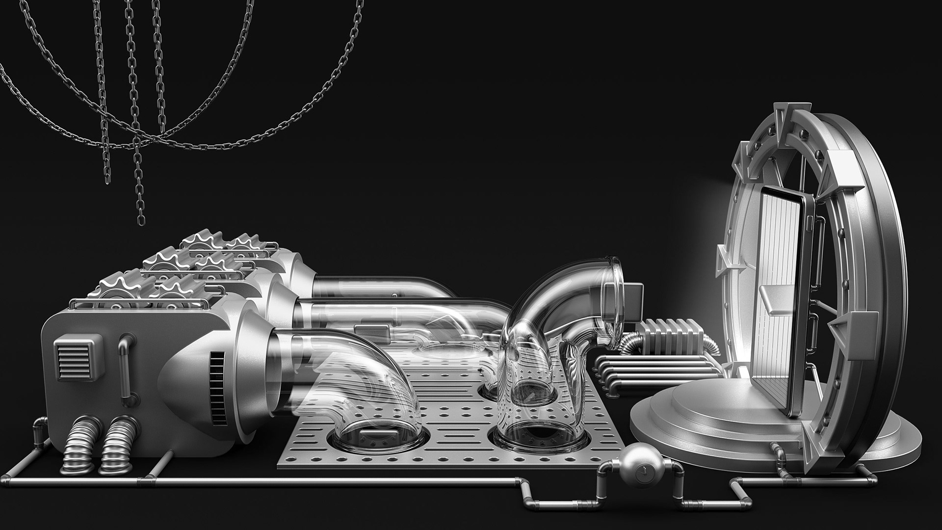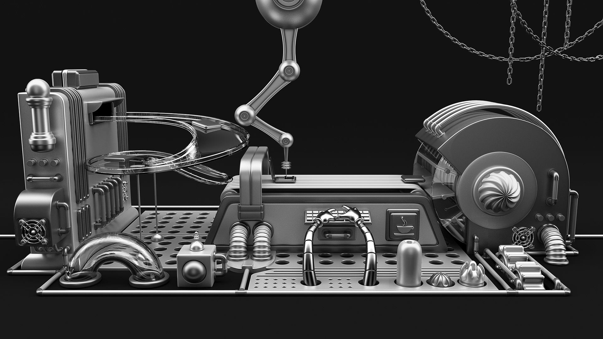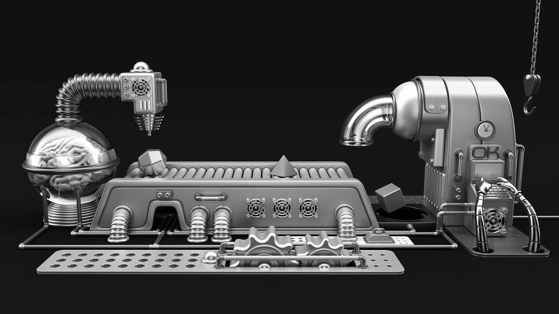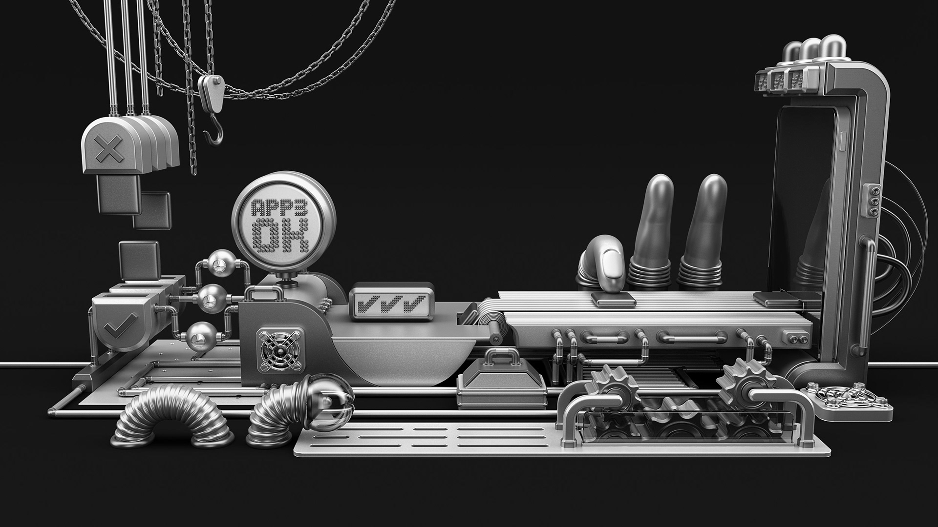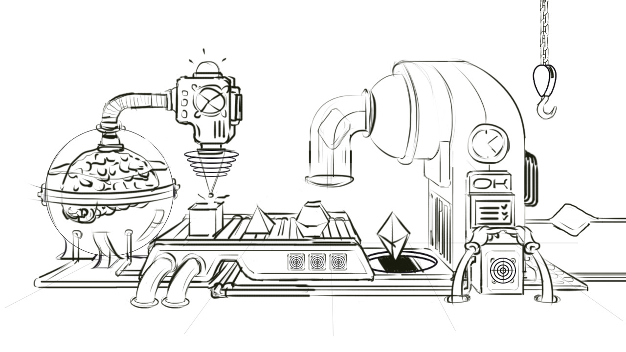 It was created for FIAP Applications Marathon 2015. These are concepts of an applications factory. This is a black and white version. The original version is colored.
